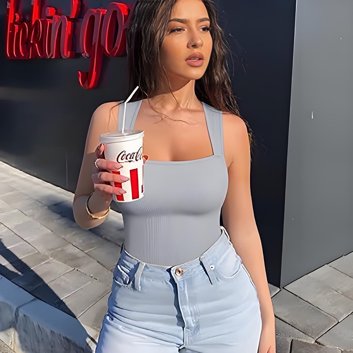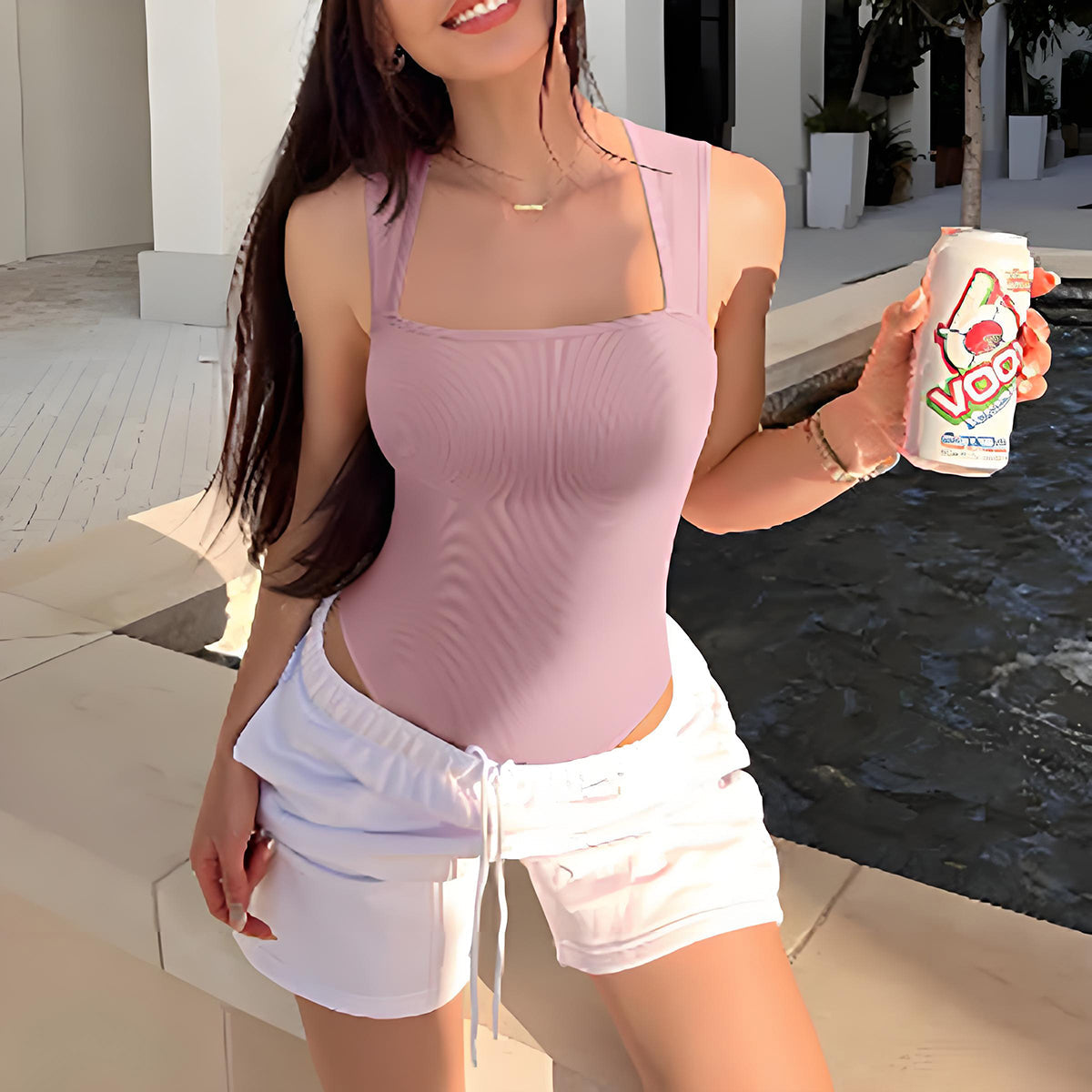 - Stylish bodysuit with a square neckline is a combination of elegance and comfort.