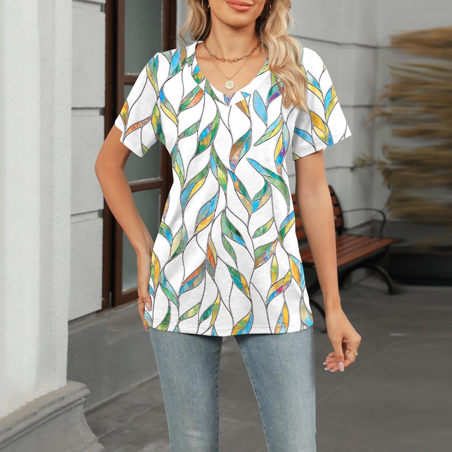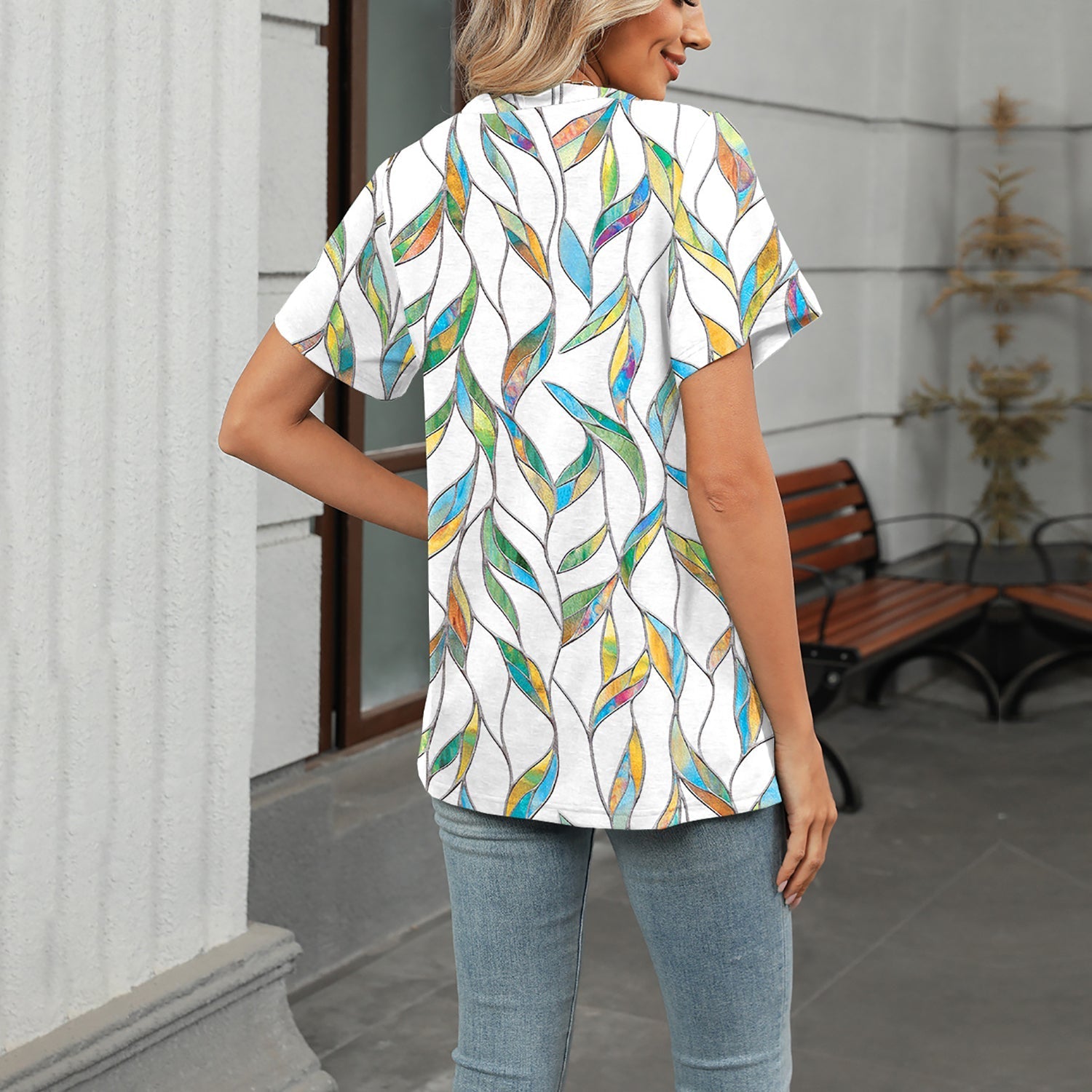 The 2025 summer oversized and loose-fitting design of this top helps to conceal the belly area while creating a slimming effect, flattering all body types. The V-neck Floral Print 3D Street Fashion Loose T-shirt is a perfect combination of comfort and style.