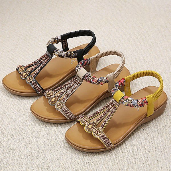 LAST DAY 70% OFF-Womens Rhinestone Beads Bohemian Breathable Wedge Sandals